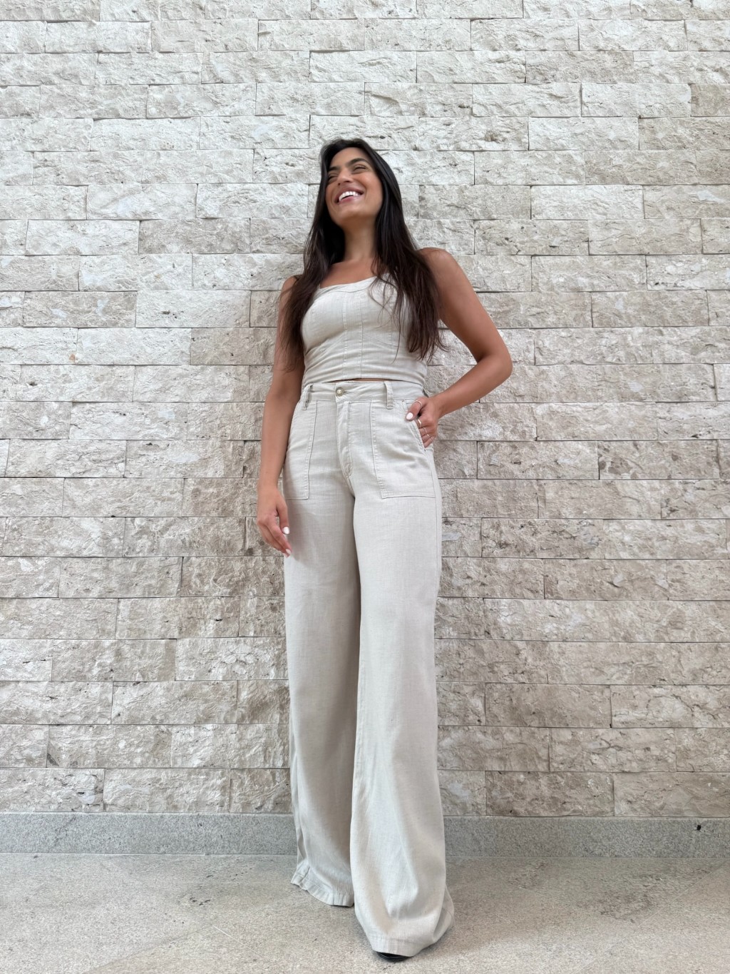 Se existe uma combinação que entrega leveza, elegância e presença, é o nosso conjunto em linho misto.